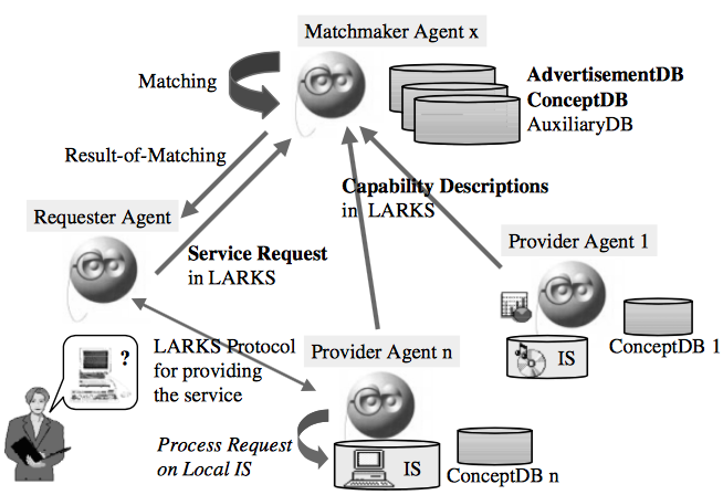 | Sycara, K.; Widoff, S.; Klusch, M.; Lu, J., LARKS: Dynamic Matchmaking Among Heterogeneous Software Agents in Cyberspace [PS] [PDF], Journal of Autonomous Agents and Multi-Agent Systems, Kluwer Academic, 5, p 173-203, 2002. |